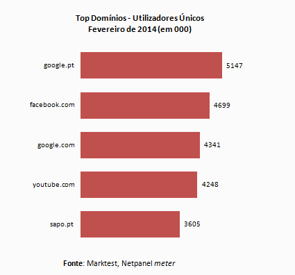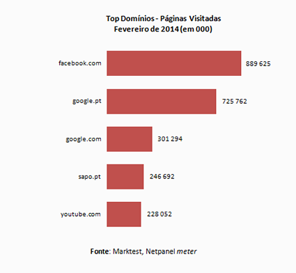 “A análise tem como base informação do Netpanel meter da Marktest, que analisa o comportamento dos internautas portugueses a partir de um painel de de indivíduos que utilizam o computador para aceder à Internet e é relativa ao mês de Fevereiro de 2014.”